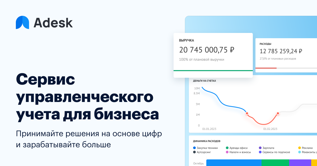 Делегируйте ему рутину и сложную аналитику. Adesk AI ответит на любые вопросы по вашим финансам, возьмет на себя десятки мелких задач и поможет принять управленческие решения за секунды.