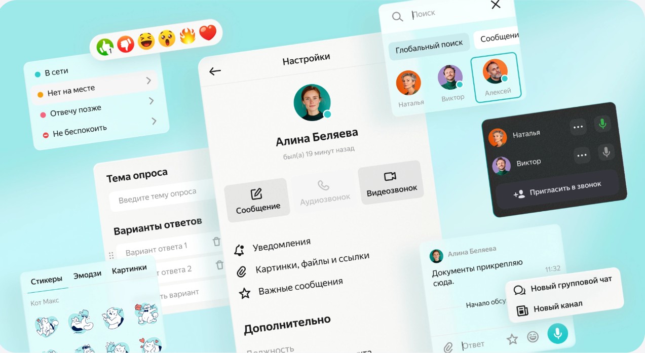 Яндекс.Мессенджер удобен для пользователей сервисов Яндекс 360 и подойдет как малому бизнесу, так и крупным организациям.