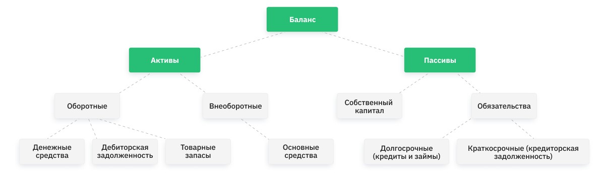 Чтобы вы могли закрепить всё, что написано выше, составили схему, отражающую структуру балансового отчета: