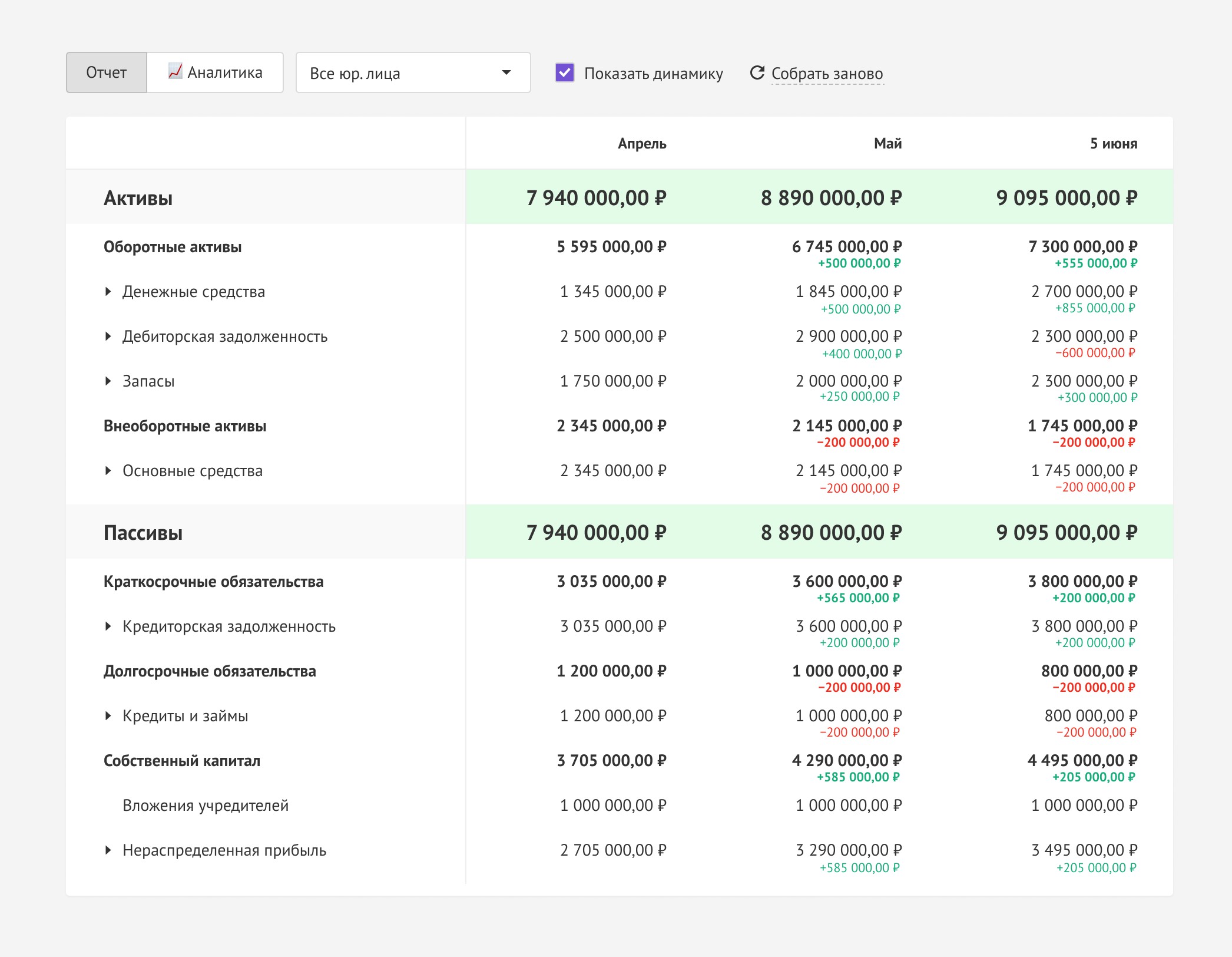 Баланс покажет, сколько активов есть у компании в денежном выражении и как меняется их количество со временем: богатеет бизнес или стоит на месте.